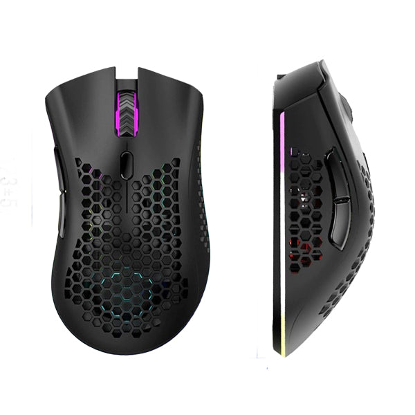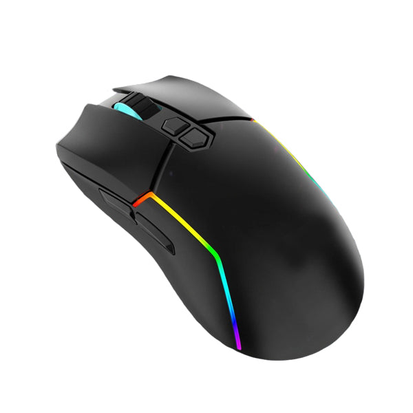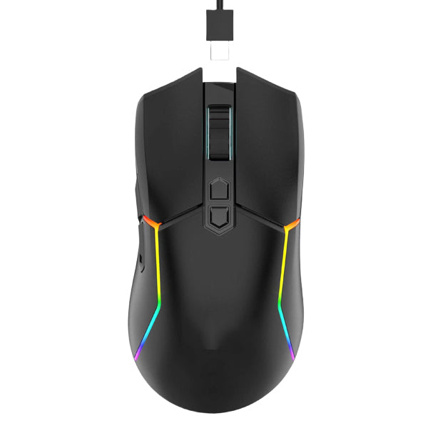 This RGB gaming mouse supports both wired and 2.4GHz wireless modes for flexible use. It features adjustable DPI from 800 to 7200 for smooth and accurate tracking. Equipped with 6 responsive keys, it ensures better control during gaming and daily tasks. The mouse offers a 10-meter wireless working distance and is built with durable ABS material. Powered by a 650mAh rechargeable battery, it eliminates the need for disposable batteries. Lightweight at 80g, compatible with Windows and iOS, and available in black and white color options.